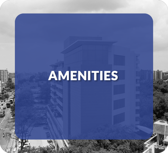 Individual single phase of main Lt. available Diesel generator/inverter for Utility. 2 Nos., 8-10 persons capacity passenger elevator, Municipal water supply + borewell, CCTV security, fire extinguisher, fire hydrant, and wet Riser as per NBC norms.